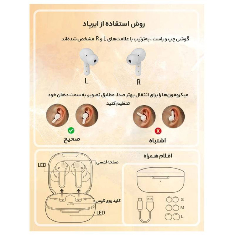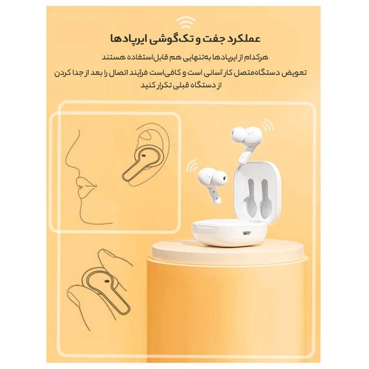 • سایر قابلیتها (ویژگیها): مناسب برای مکالمه، گیمینگ، ورزش، کاربری عمومی، دارای محفظه شارژ، حذف نویز میکروفون، پشتیبانی از فرامین صوتی، صدای Hi-Fi، حالت Sleep Mode برای جلوگیری از لمس ناخواسته، امکان استفاده 60 دقیقه ای تنها با 5 دقیقه شارژ